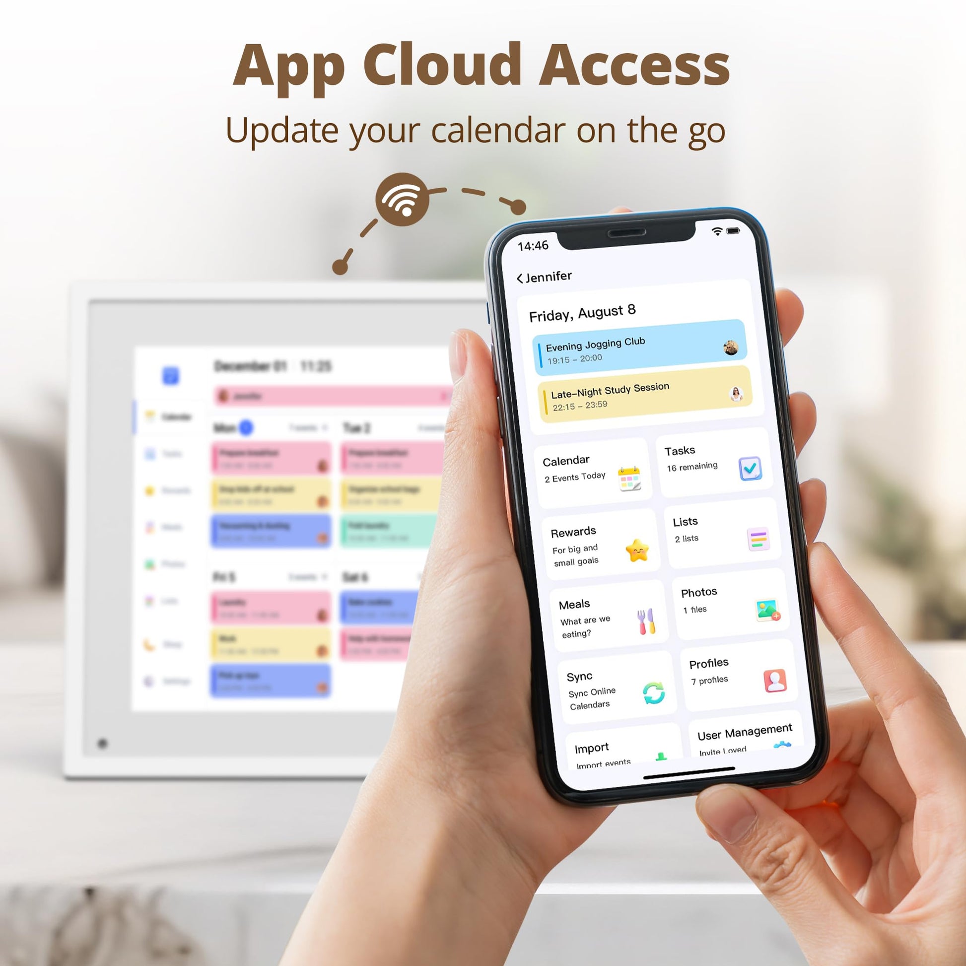 - 【Manage from Anywhere】: Stay connected with the powerful eCalendar App. Access and manage your calendar on the go, with free features like a photo frame, chore chart, dinner plan, grocery list, and more. Paid functions like Magic Import offer advanced tools tailored for users with special needs.