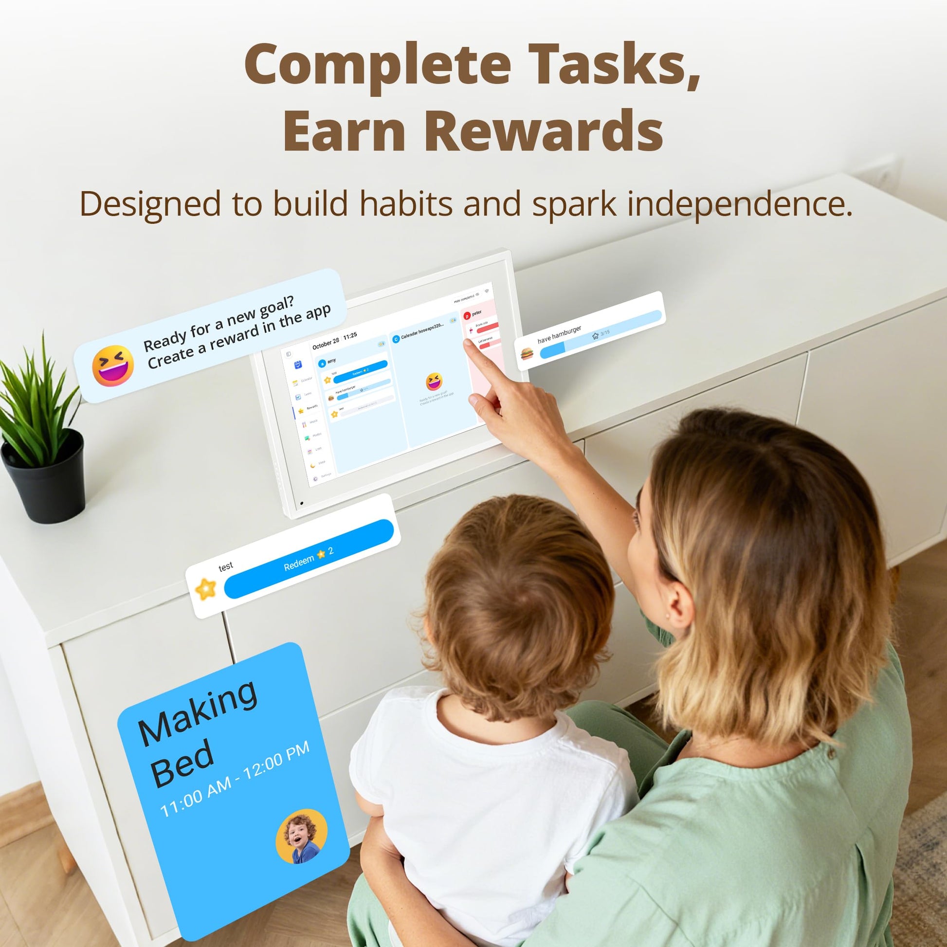 - Chore Chart – Interactive Touchscreen, Smart Family Planner, Hearth Display Desk Digital Calendar Best Gifts for Christmas, Wedding, Mom